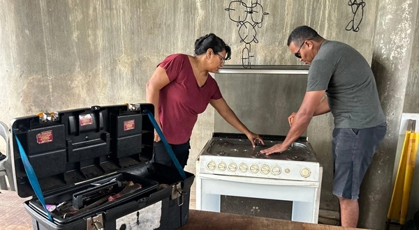 Izalete tornou-se sua parceira de negócios e braço direito. Ela que dirige o carro e leva o marido até as casas dos clientes para consertar os fogões. “A deficiência dele é só na locomoção. Ele faz tudo. Quando chegamos, levo ele até o fogão e de lá ele resolve”, conta.